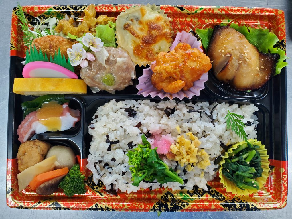 調理師免許を持ったスタッフが、メインはもちろんのこと、副菜まで全て手作りで仕上げる、見た目も鮮やかなお弁当をお届けしております。