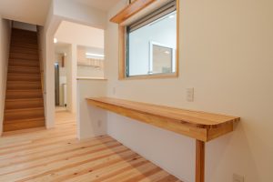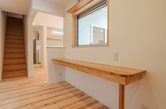 ▼廊下 家族みんなががちょっとした学習や読書などができるよう、廊下にカウンターを設置。