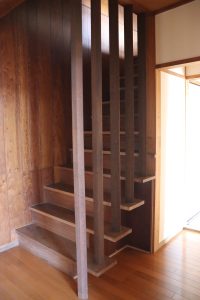 欅(ケヤキ)の階段はそのままに。