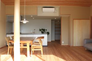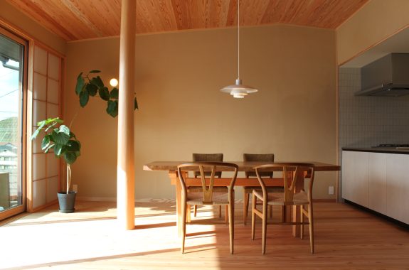床は畳から無垢材のフローリングに。構造上、取り除けなかった柱は新しいものに取り替え、空間のアクセントとなった。